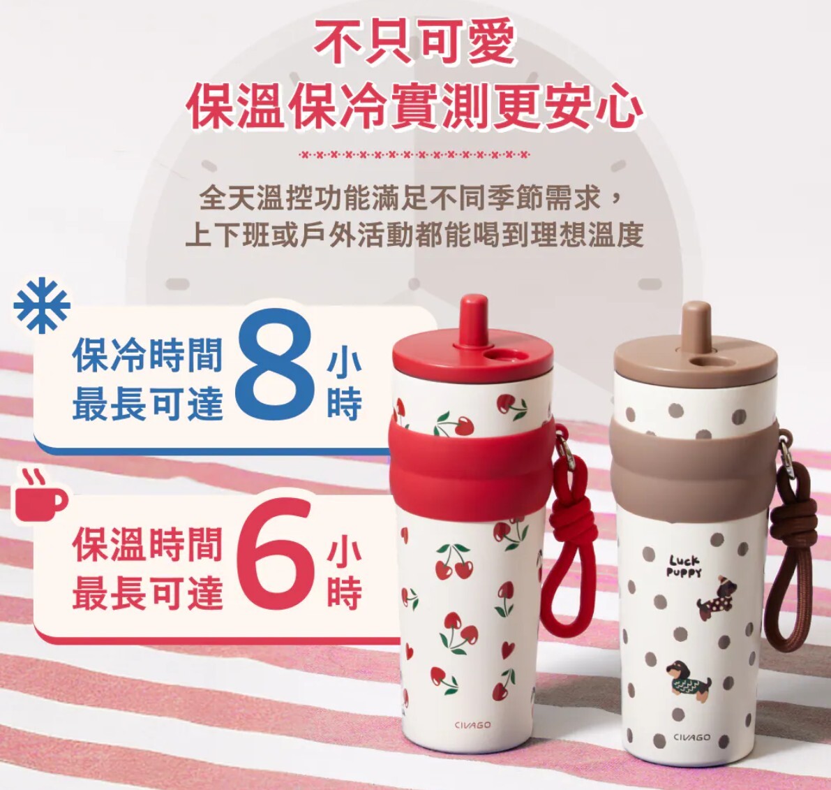 . 雙層保溫設計:保溫約4-6小時;保冷約6-8小時