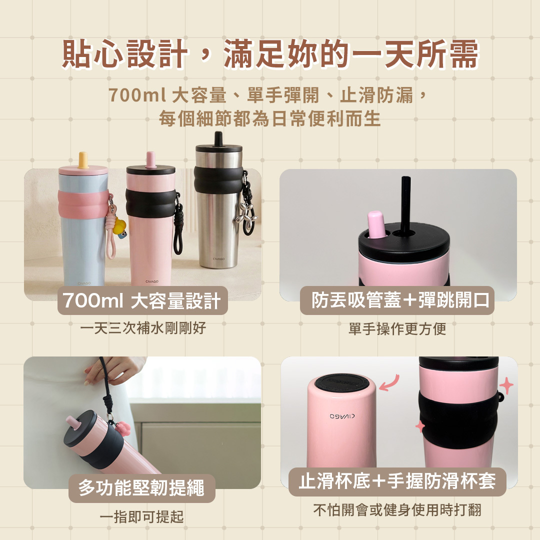 . 防塵杯蓋:從第一口到最後一口都純淨