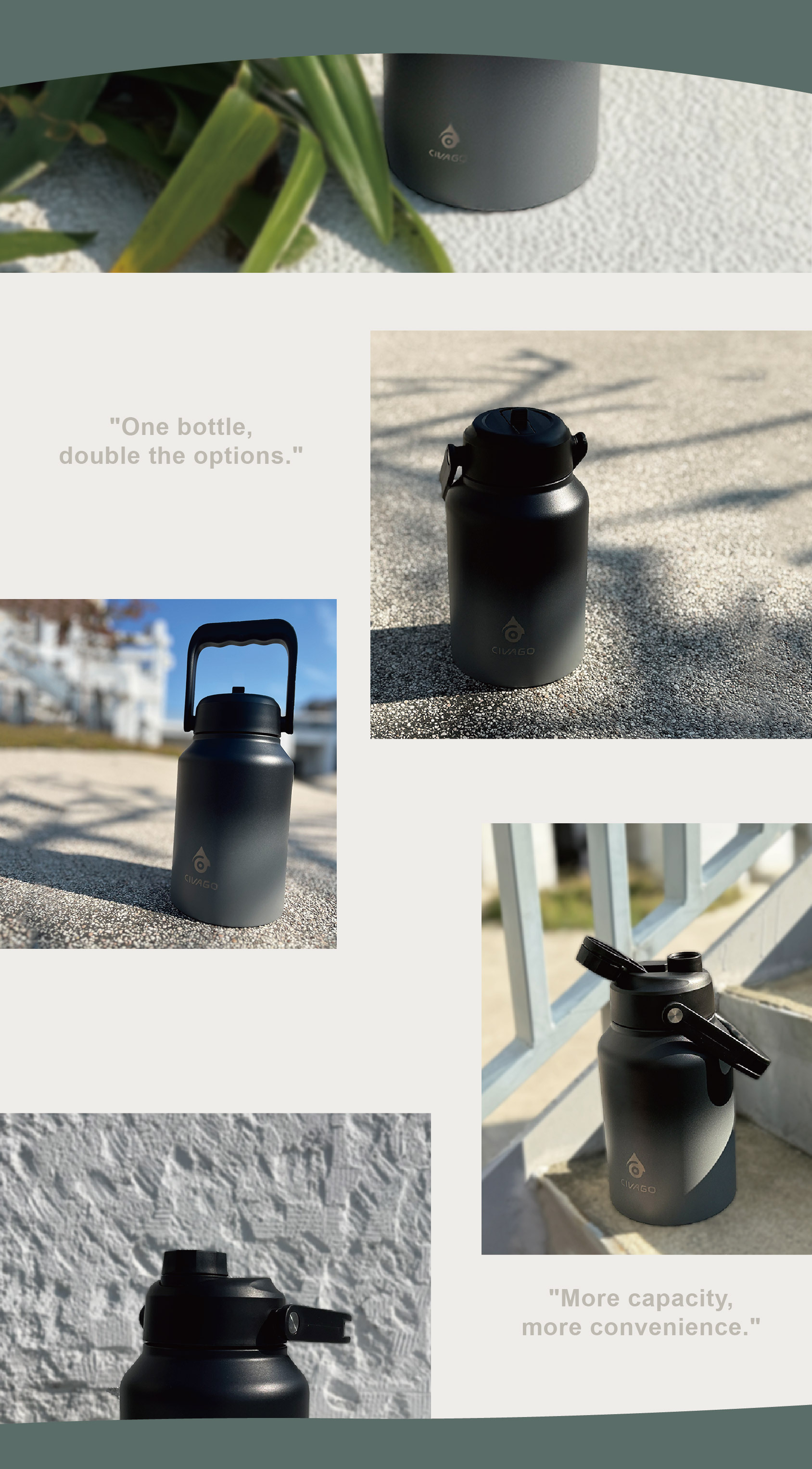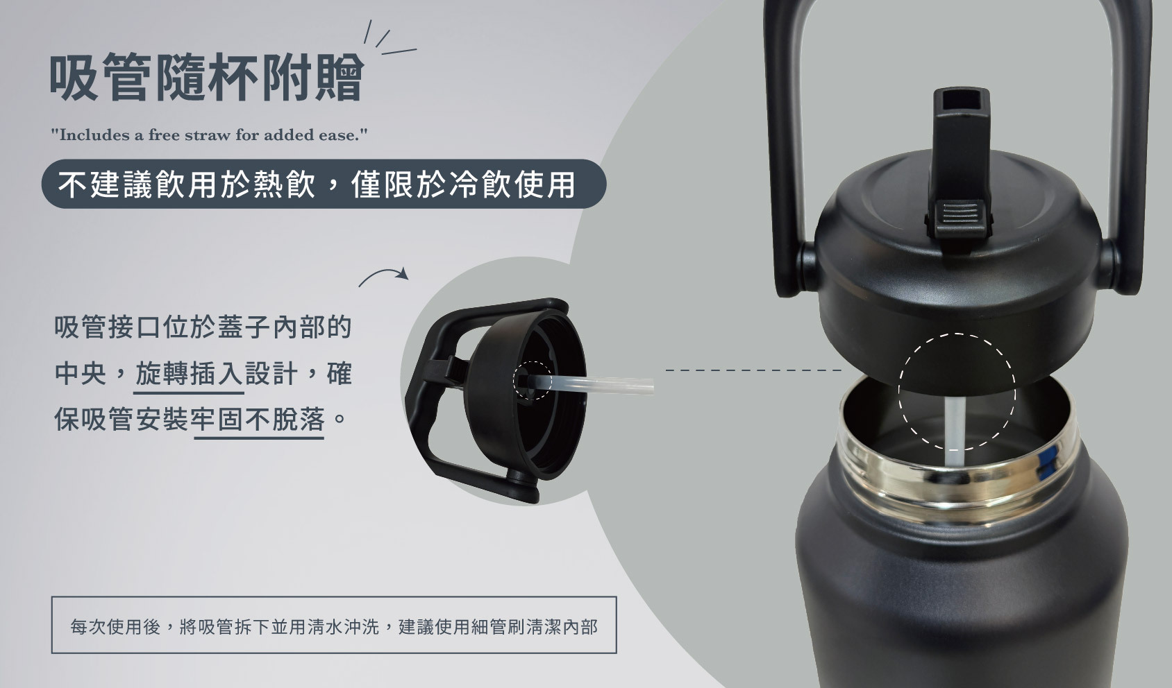 . 雙瓶蓋設計:寬口瓶蓋 / 吸管瓶蓋